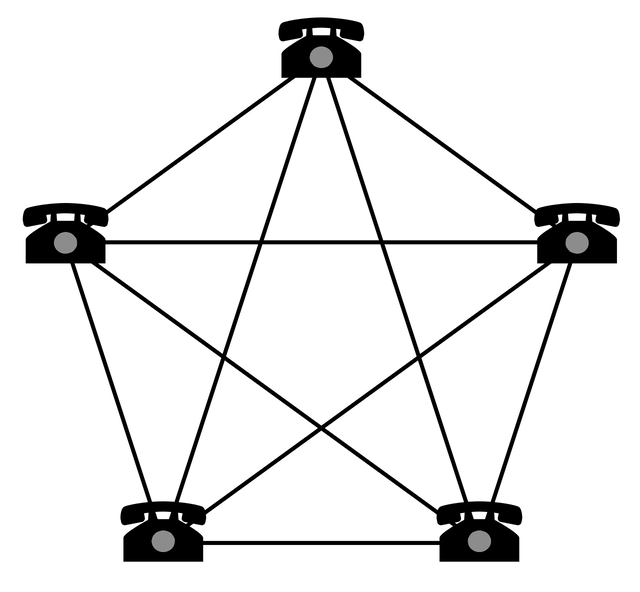 The telephone network is a perfect example, because everyone who joins the network can call anyone else. I can call one of my cousins in Boston just as easily as I can call a stranger Lesotho. When there are two nodes in this graph, there's only one connection: