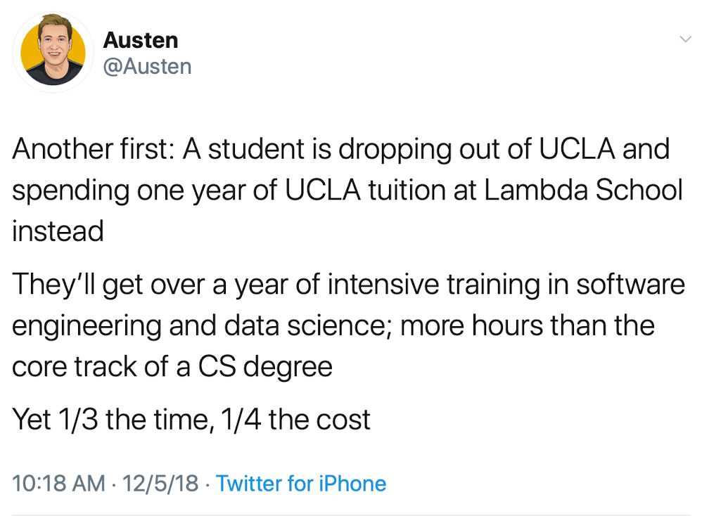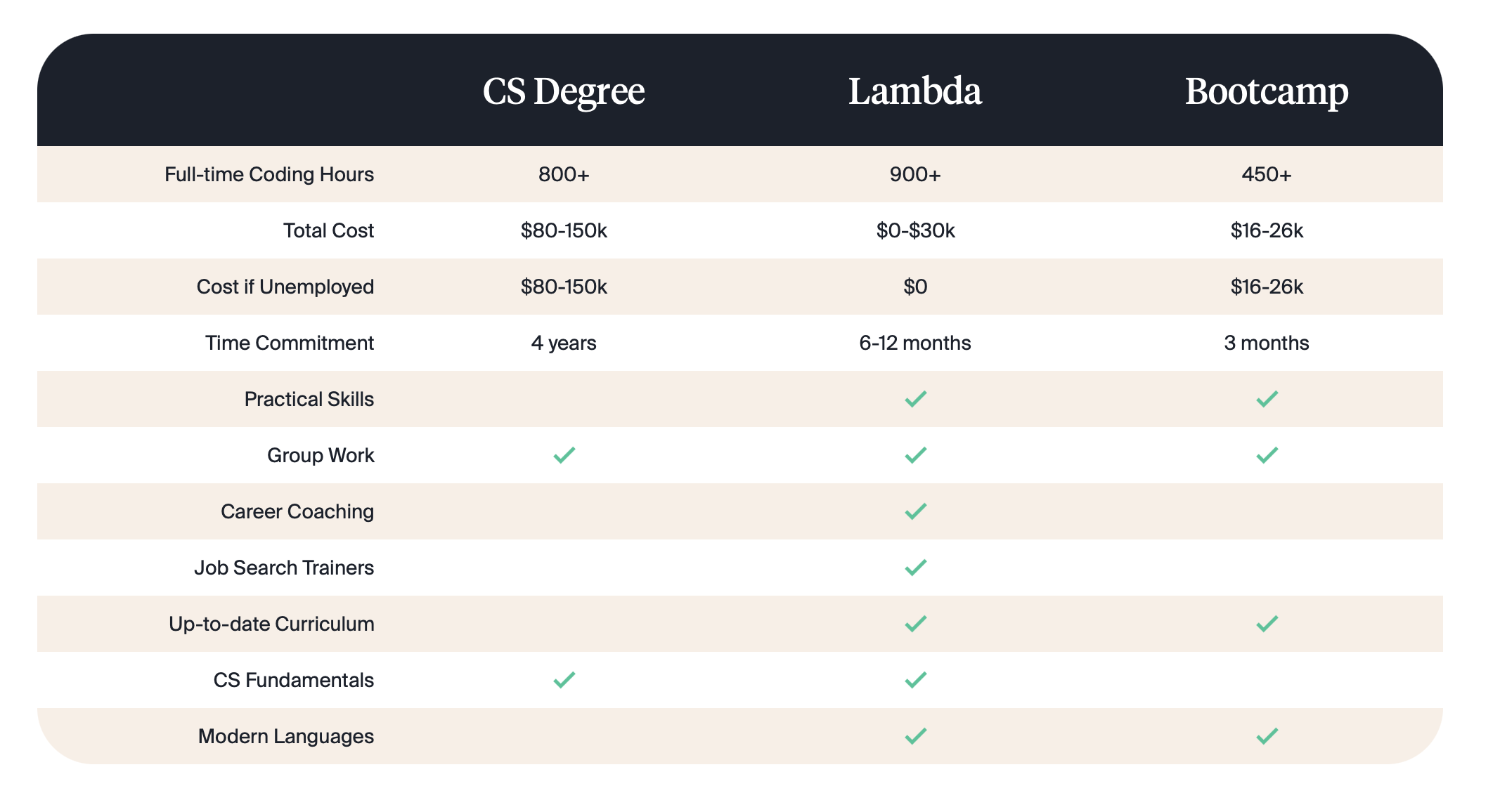 When VCs looked at Lambda School, they saw a company with the potential to decimate Computer Science degrees the same way Uber destroyed taxi medallions.
