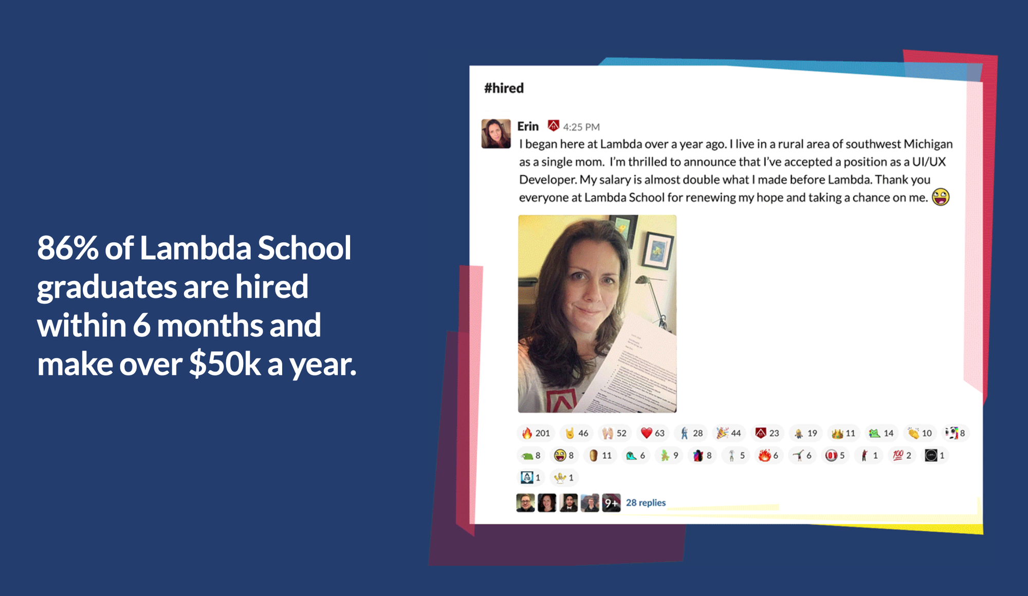 These results blew away other bootcamps, proved the power of "incentive alignment," and belonged on the front page of LambdaSchool.com.