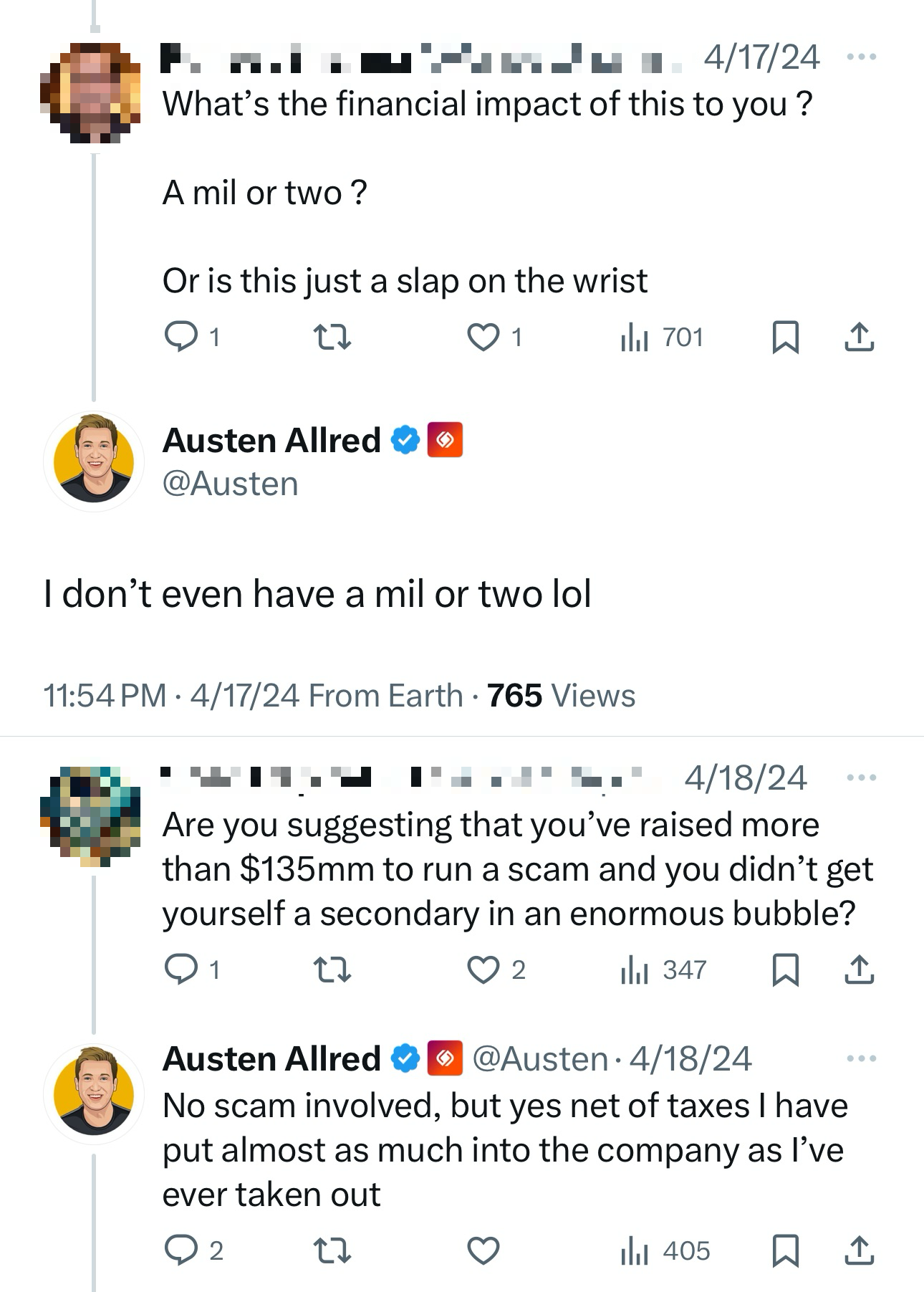 But with all the money revolving around the company, isn't $100,000 just a slap on the wrist? While Austen likes to play the role of a successful entrepreneur, he claims he isn't rich.