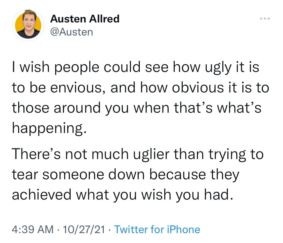 There's not much uglier than trying to tear someone down because they achieved what you wish you had.