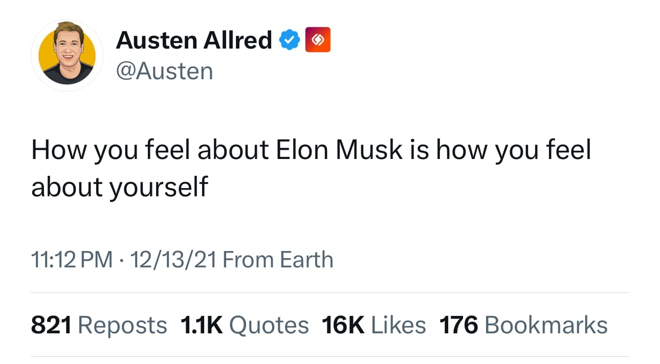 Just as Elizabeth Holmes mimicked Steve Jobs, Austen obsesses over Elon Musk. In 2016, he put his entire life savings into Tesla stock. When Lambda School raised its first round of financing, he tweeted "Funding Secure," a nod to Elon's infamous tweet. Austen role-played as Musk, but lacked the power to get away with his antics.