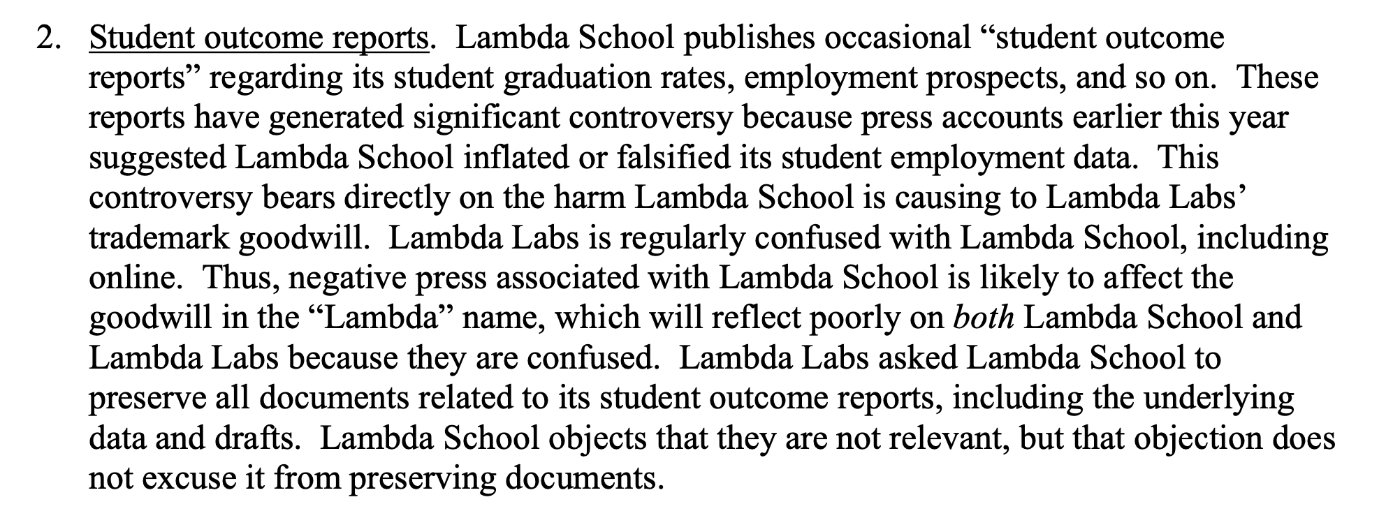 Austen claims the rebranding was all about a trademark dispute… and technically that is true. Back in 2019, the AI hardware company Lambda Labs sued Lambda School for the Lambda in its name. But what were the grounds for its case?